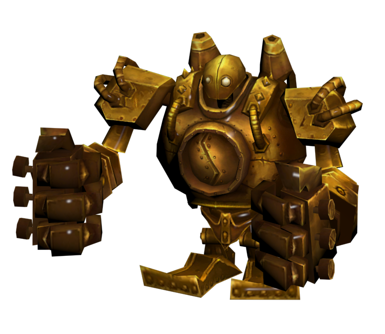 It is a mecha designed in a steampunk aesthetic, with an open control panel, making it easier to target the person or creature controlling it.